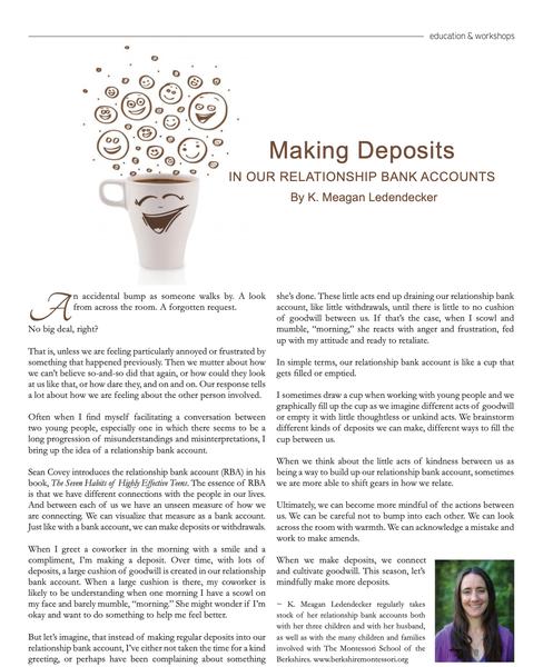 15th February 2018 Making Deposits We can think about the little acts of kindness between us as being a way to build up our relationship bank account.