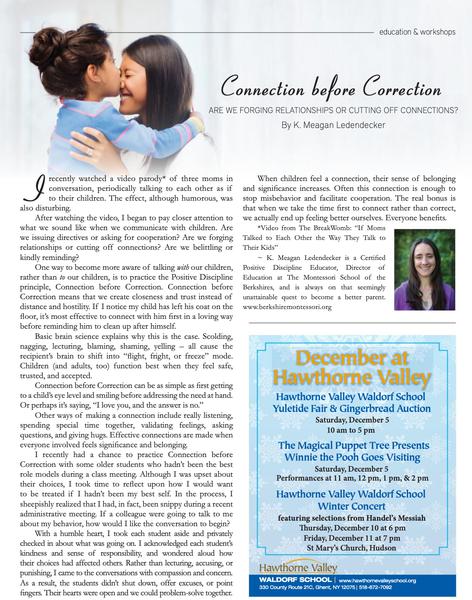 15th December 2016 Connection Before Correction When children feel a connection, their sense of belonging and significance increases.
