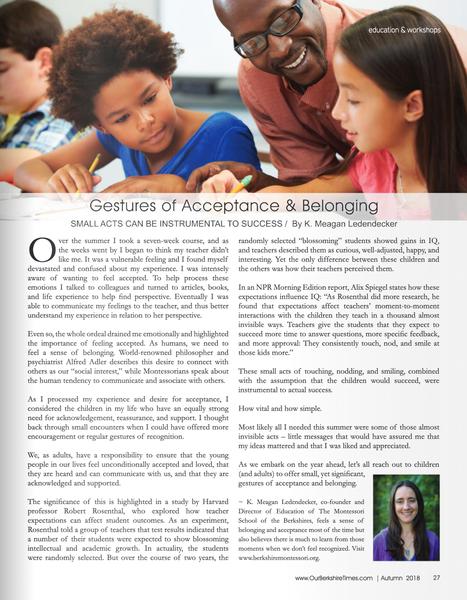 15th October 2018 Gestures of Acceptance and Belonging These small acts were instrumental to actual success.