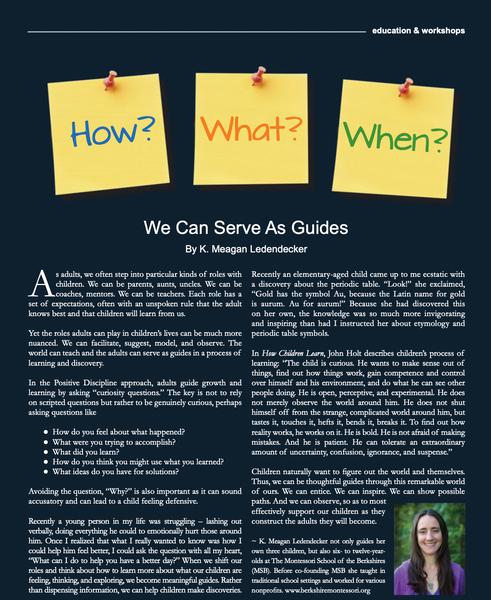 15th July 2017 We Can Serve as Guides Children naturally want to figure out the world and themselves.