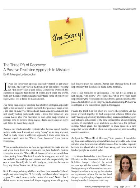 15th August 2016 The Three R's of Recovery It was the throw-away apology that really started to get under my skin.